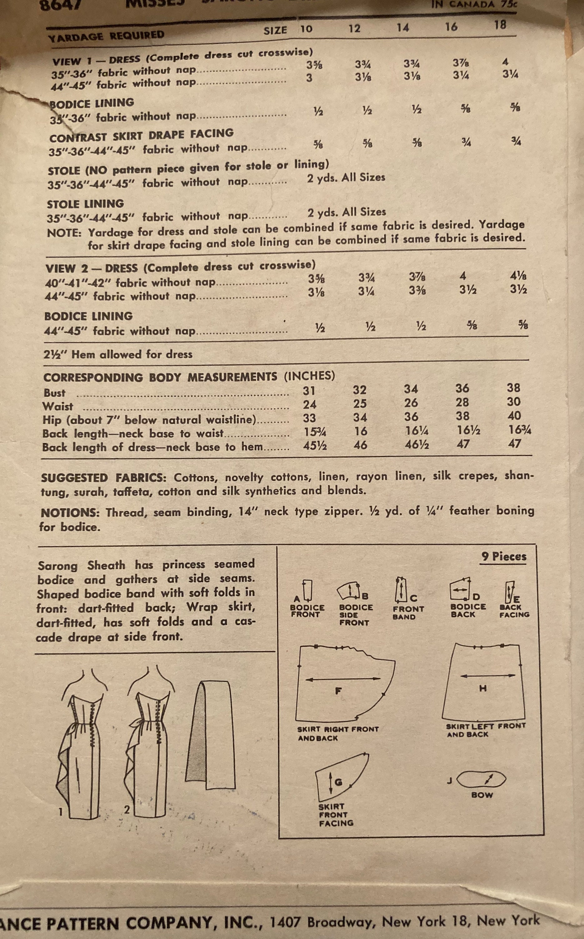 Vintage Sewing Pattern Misses 1950s Sarong Dress And Stole Etsy